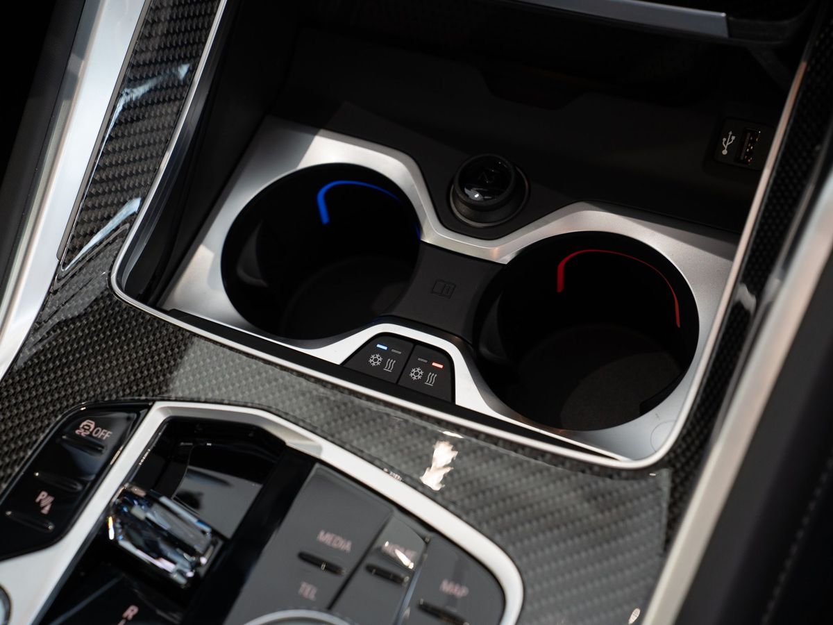 Стеклянная отделка деталей интерьера CraftedClarity: переключатель переключения передач с подсветкой символа "X", регулятор громкости, контроллер iDrive, кнопка Start/Stop